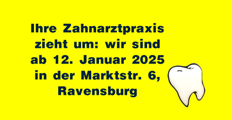 unsere Zahnarztpraxis Dr. Stella Brückner bleibt Ihnen in Ravensburg erhalten – wir ziehen nur ein paar Straßen weiter.